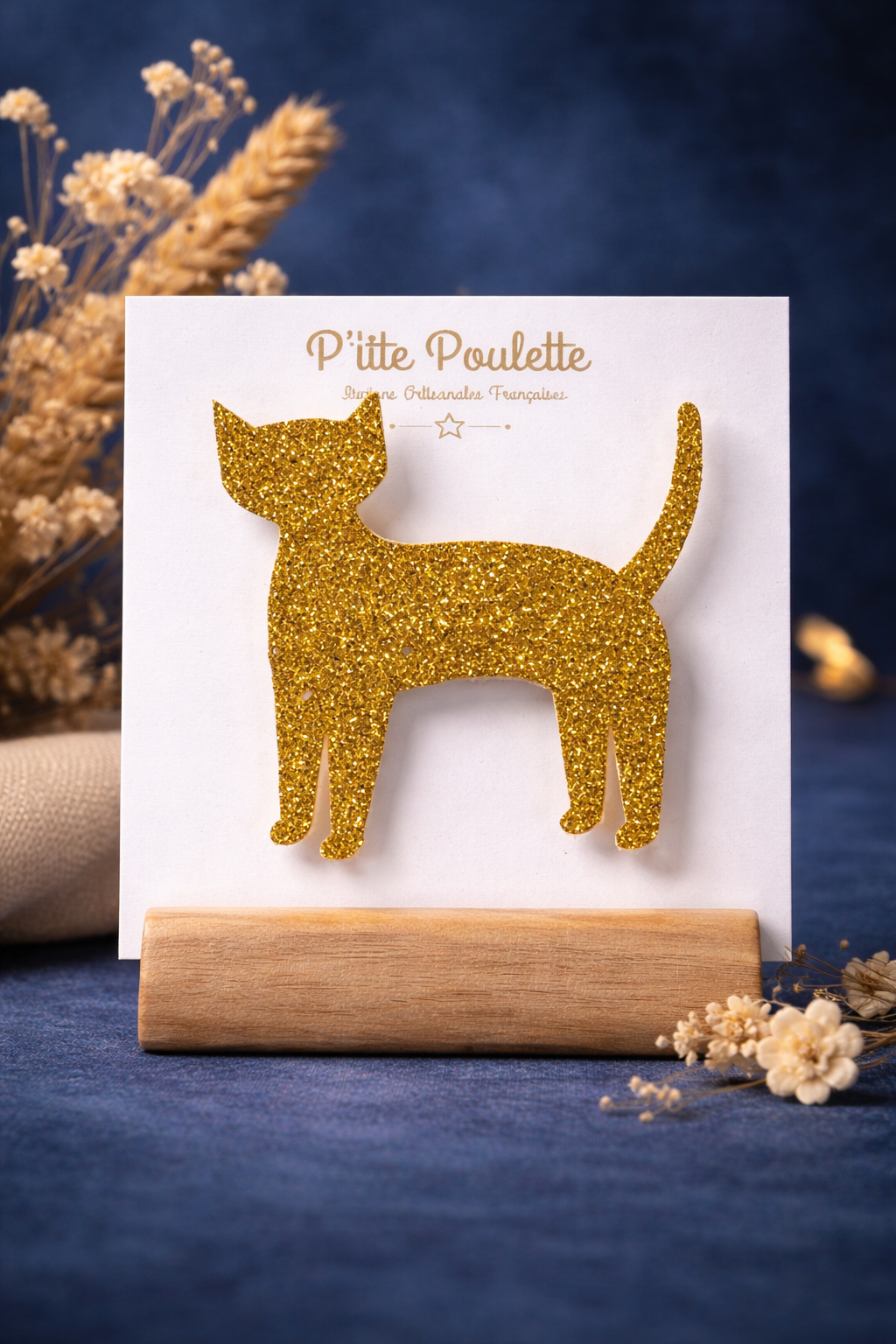 Chaque broche est confectionnée artisanalement en France, en petite série. Cette création s’inscrit dans l’univers P’tite Poulette : des accessoires soignés, ludiques et pensés pour durer.
