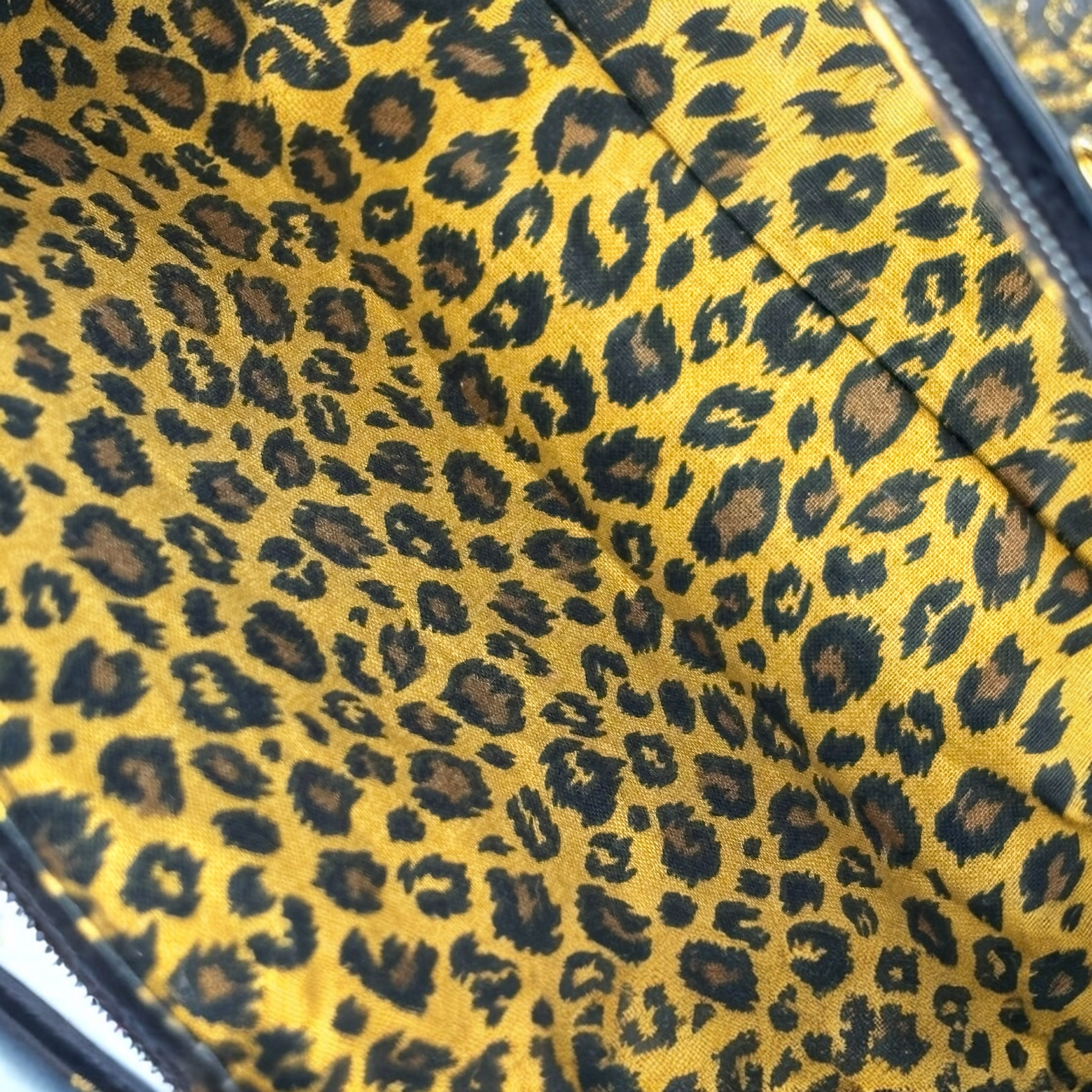 Sac en simili cuir effet peau de pêche noir brillant orné de fronces léopard. Sa anse dorée et ses détails étoilés lui confèrent un charme chic et moderne. Une création artisanale signée P’tite Poulette.