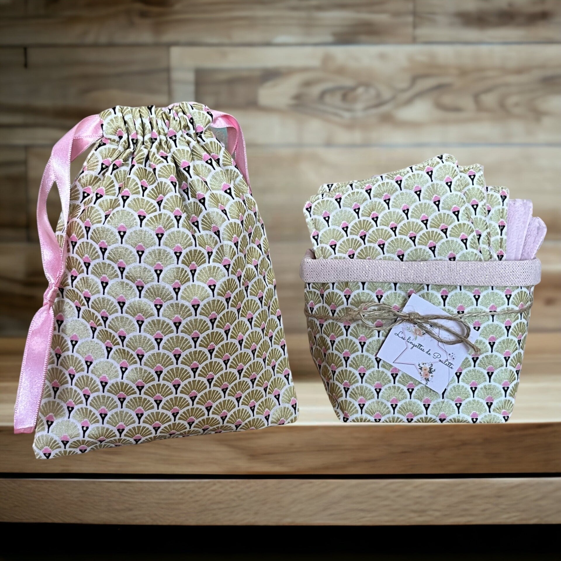 Ensemble de 8 cotons lavables en microfibre de bambou avec panière et pochon
