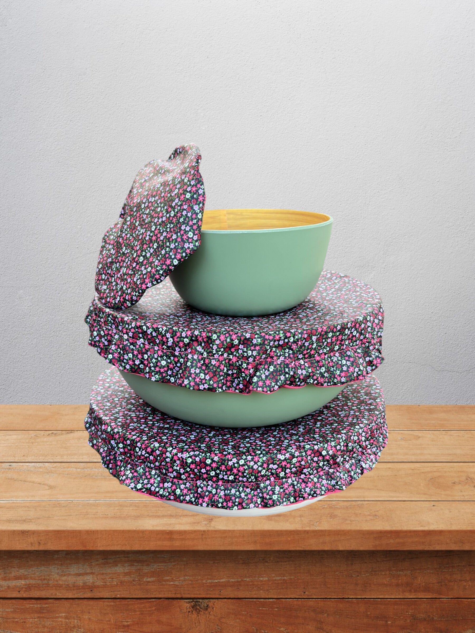Lot composé de 3 charlottes alimentaires/couvres plats en tissus enduit 100% oeko tex (garantit sans substance nocive).