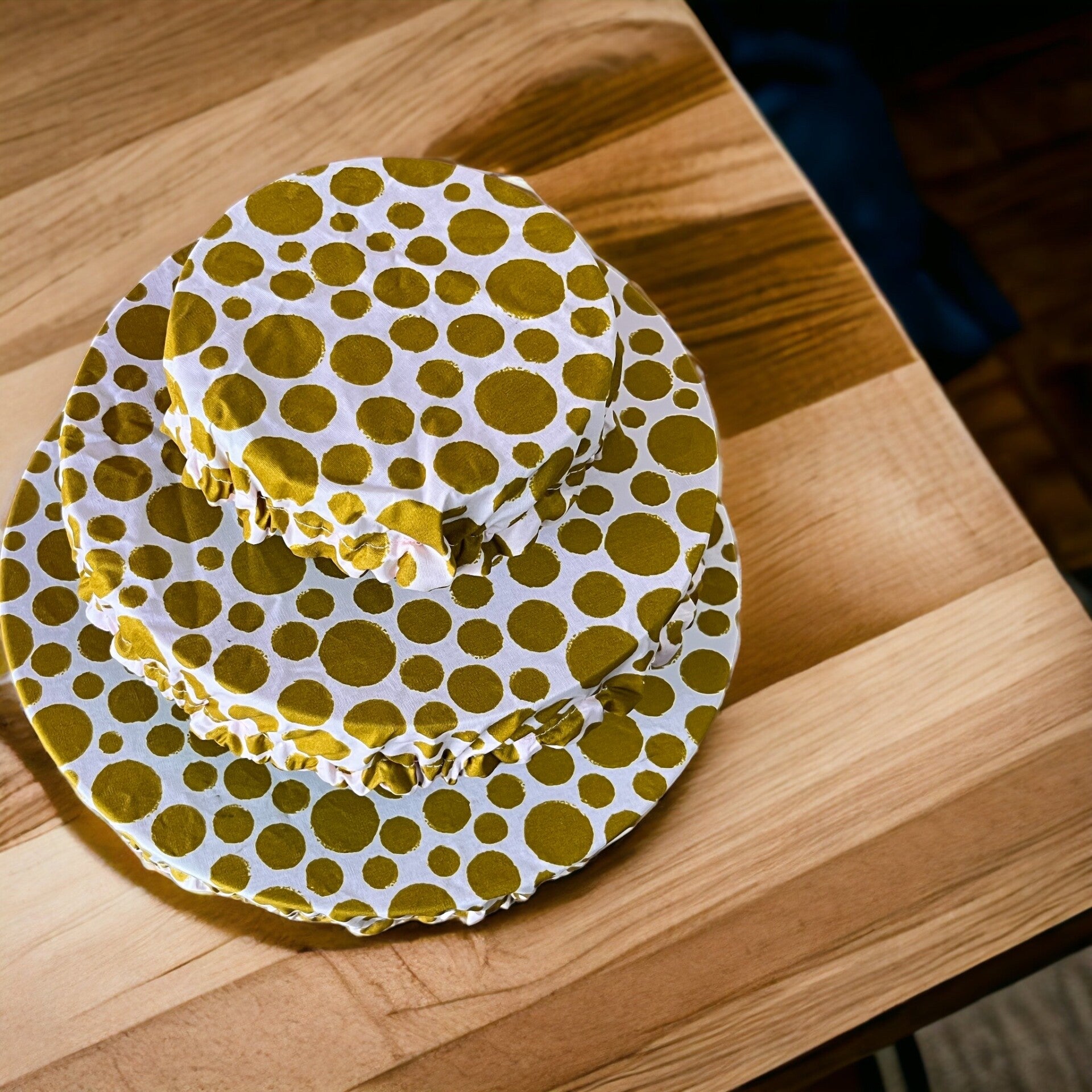 Lot composé de 3 charlottes alimentaires/couvres plats en tissus enduit 100% oeko tex (garantit sans substance nocive).