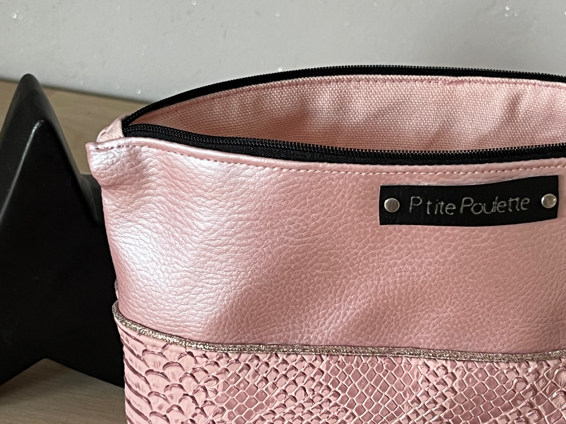 Trousse Rose en simili cuir façon croco P'tite Poulette - Création artisanale française