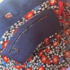- Intérieur en coton fleuri : L’intérieur est doublé d’un magnifique tissu en coton aux motifs floraux, dans des tons de rouge et de bleu, ajoutant une touche de fraîcheur et de charme à chaque ouverture du sac.