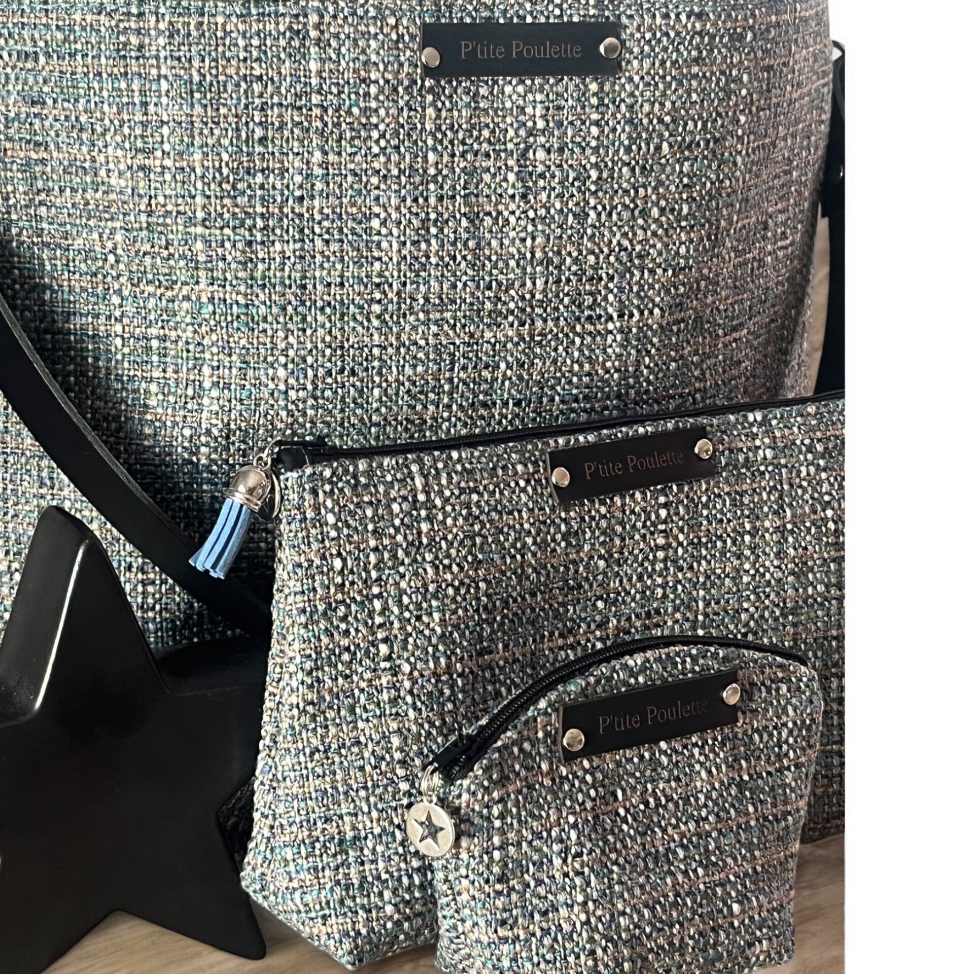 Confectionné dans un très joli tweed dans les tons bleu, ce sac est un intemporel indémodable à avoir dans sa garde robe! La anses en cuir, conçues pour un porté épaule confortable, ajoutent une finition élégante et durable.