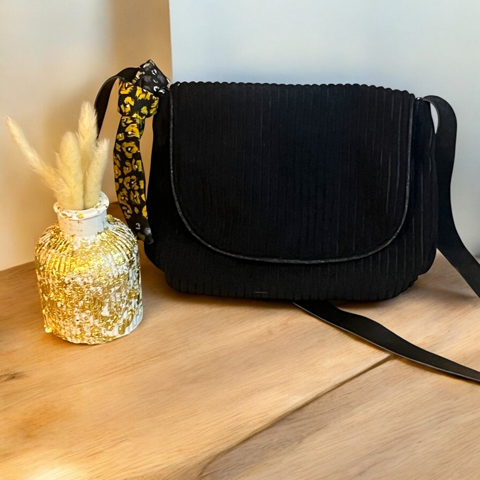 - Design soigné : Un rabat sublimé par un passepoil pailleté pour une touche lumineuse et féminine.