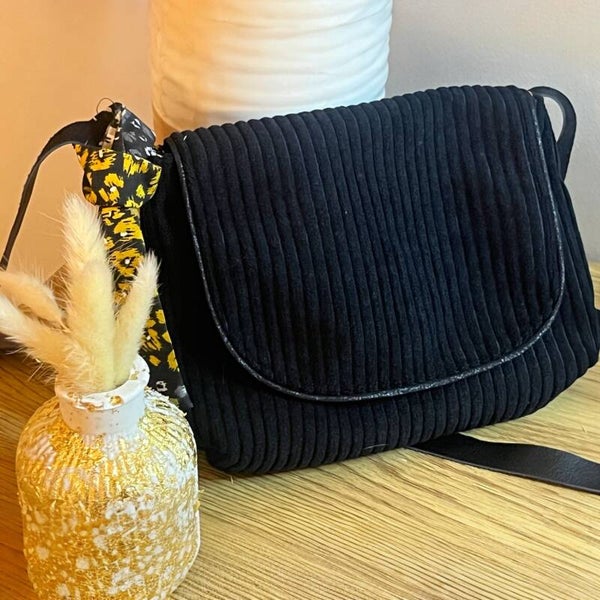 Laissez-vous séduire par notre dernier modèle de mini sac compact et raffiné en velours cotelé de couleur noir. Pensé pour vous accompagner dans toutes vos aventures, ce sac allie élégance et fonctionnalité grâce à ses finitions soignées et ses détails irrésistibles.