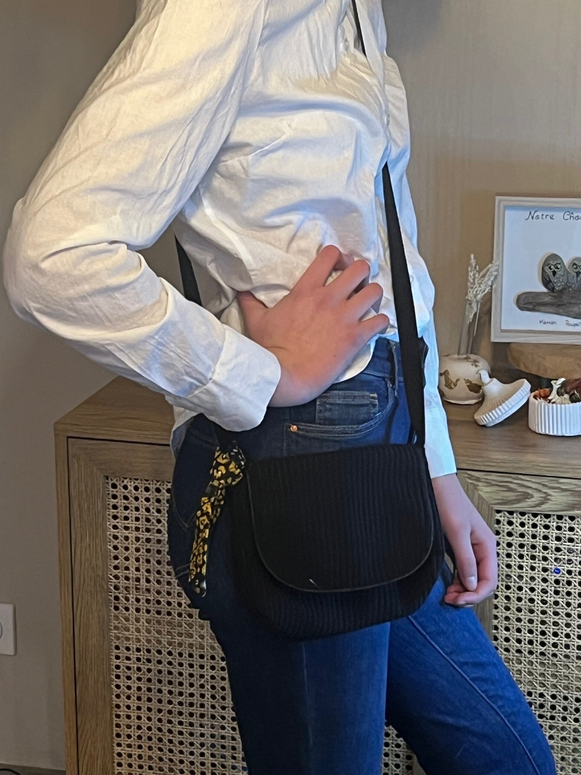 Le mini sac besace "P'tite Poulette" Noir- Création artisanale française