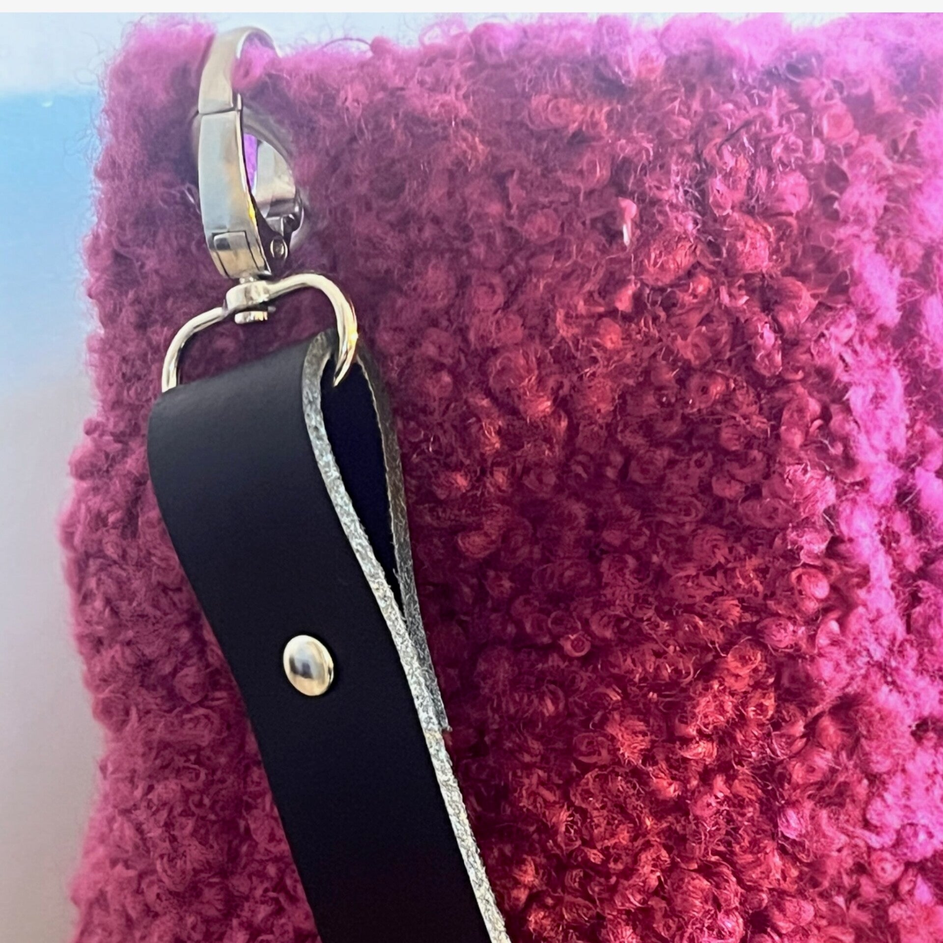 Sac cabas "P'tite poulette Collection" en tissu bouclette rose et anse en cuir- Création artisanale française