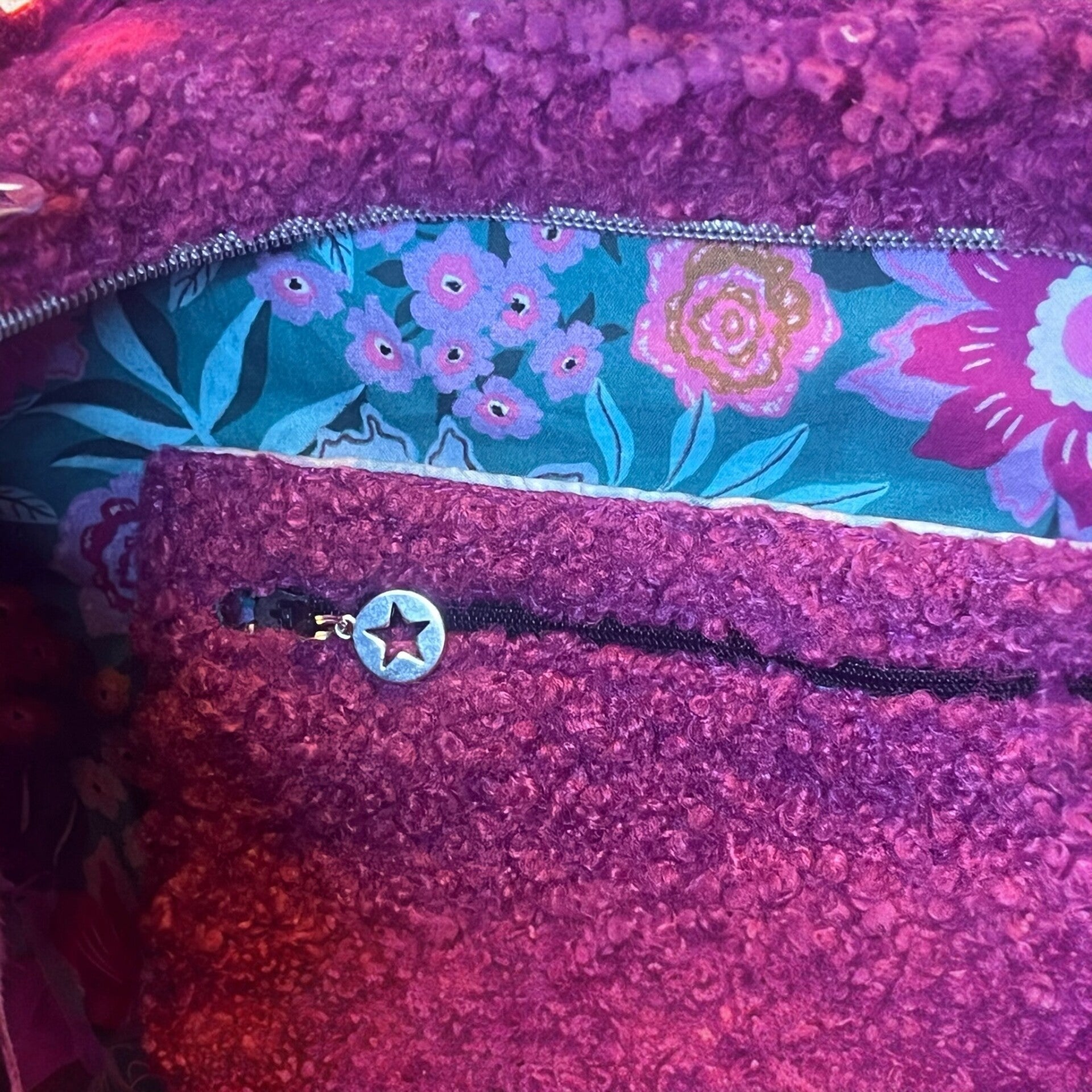 Laissez-vous charmer par la douceur du tissu bouclette, une matière qui allie élégance et confort pour sublimer tous vos looks. Polyvalent, raffiné et pratique, ce sac cabas "P'tite Poulette" deviendra rapidement un incontournable de votre garde-robe.