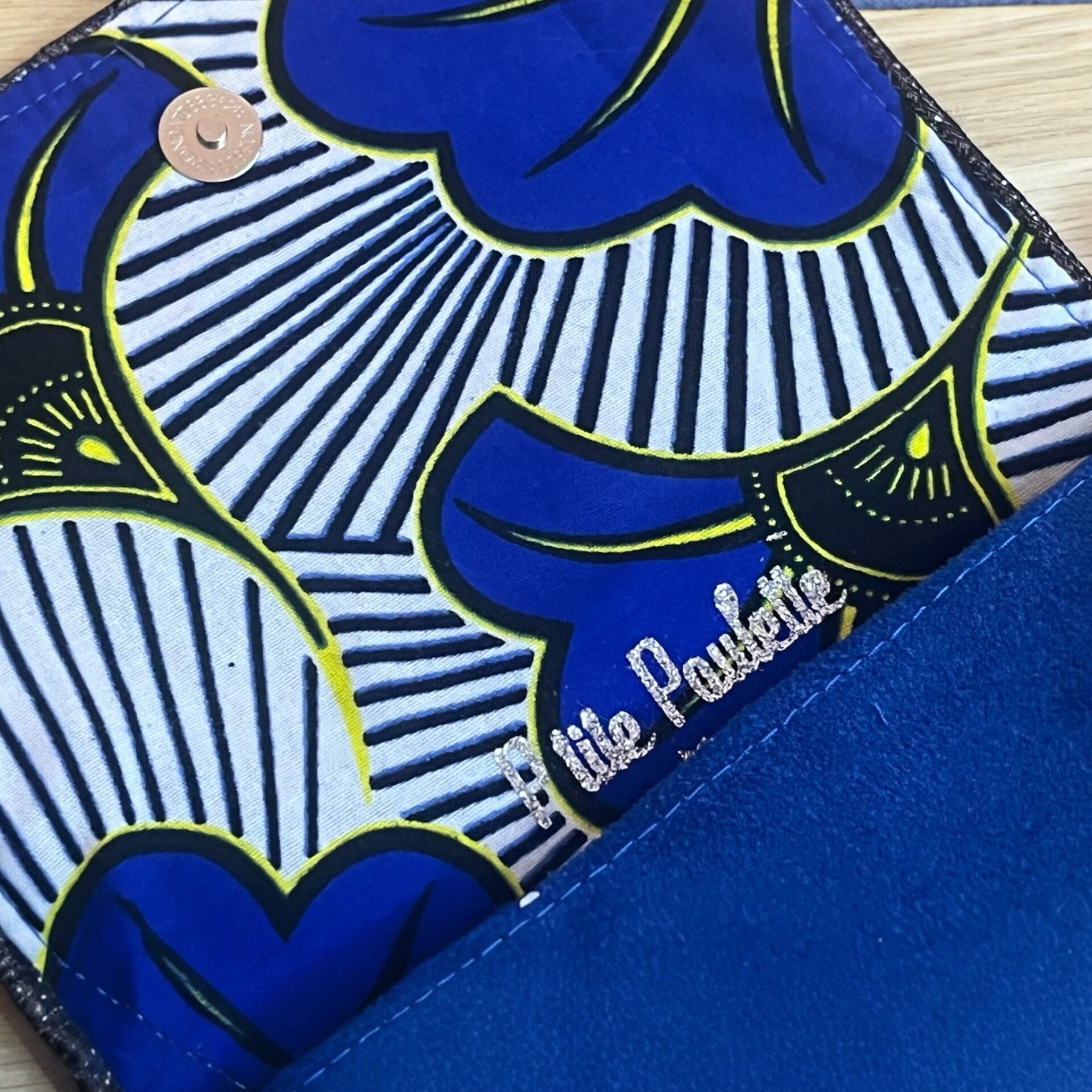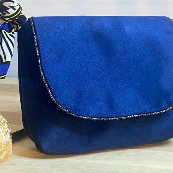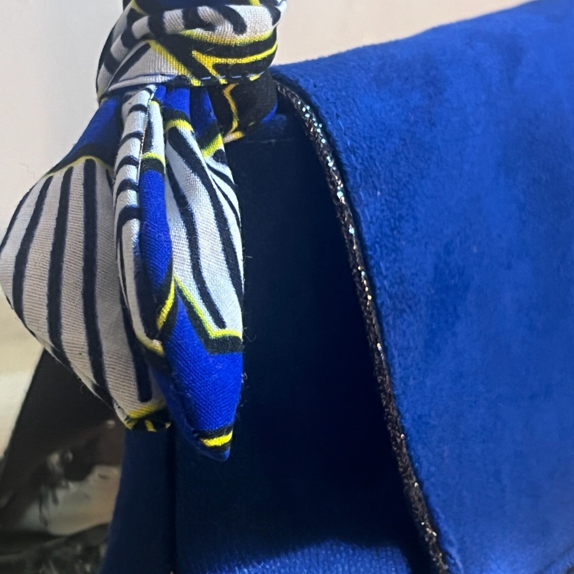 Le mini sac besace en suédine bleu roi et wax- Création artisanale française