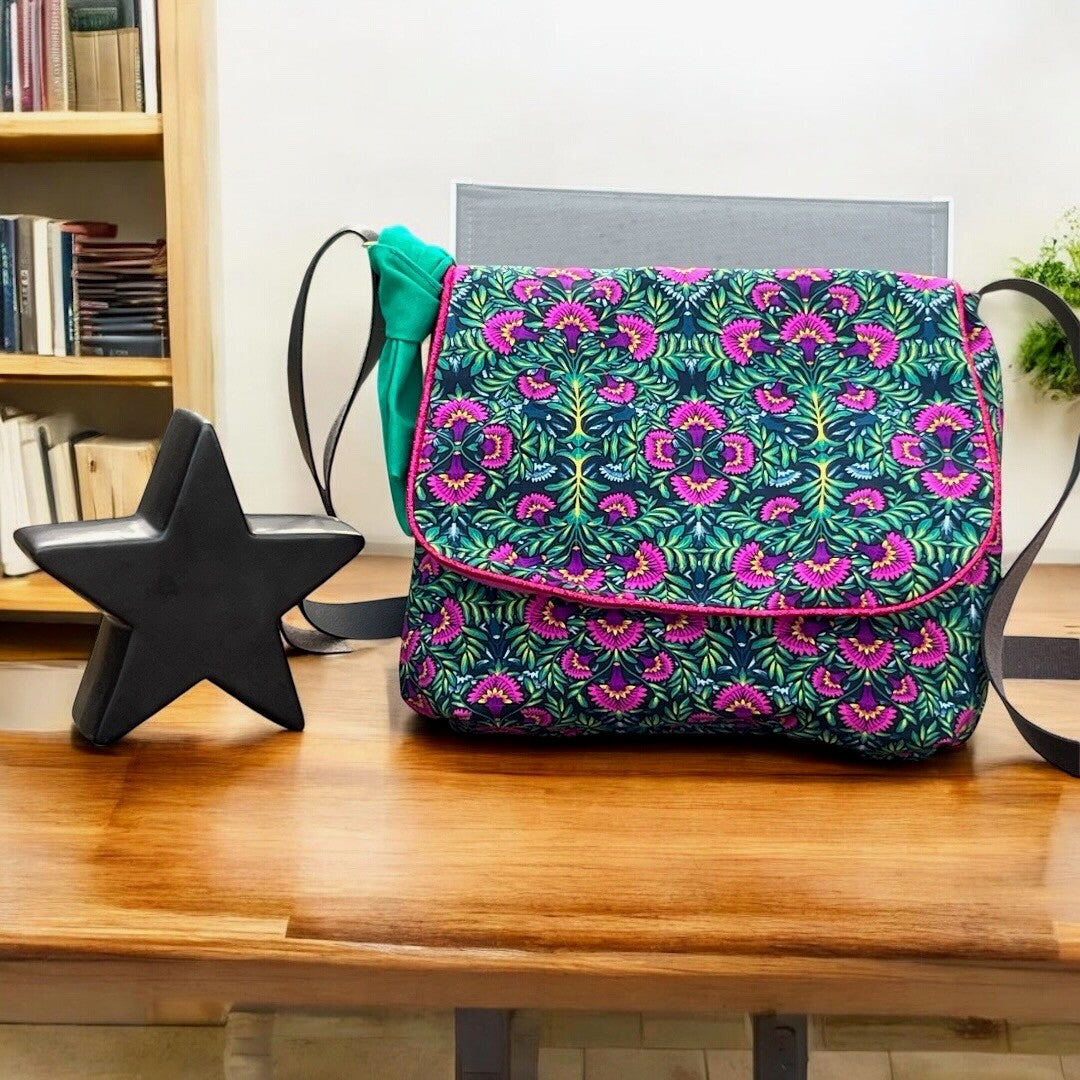 Sac besace en toile de coton motif tropical- Création artisanale française