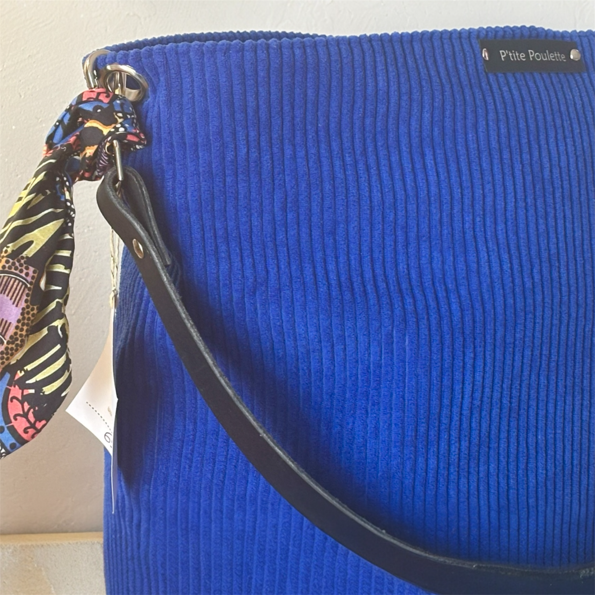 Sac Cabas "P'tite poulette Collection" en Velours Côtelé Bleu roi – Création Artisanale Française P’tite Poulette