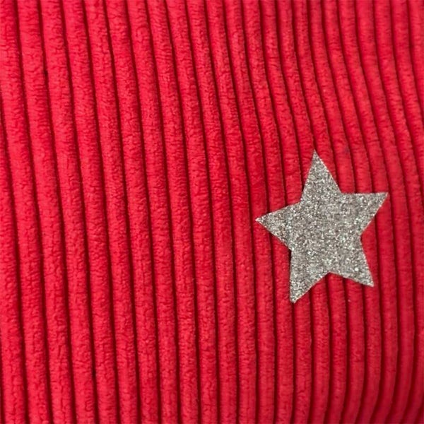 Trousse en velours cotelé rouge vif  23 x 14 x 4 cm, chic et colorée. Fait main en France, finitions soignées et zip orné d’une étoile inoxydable.