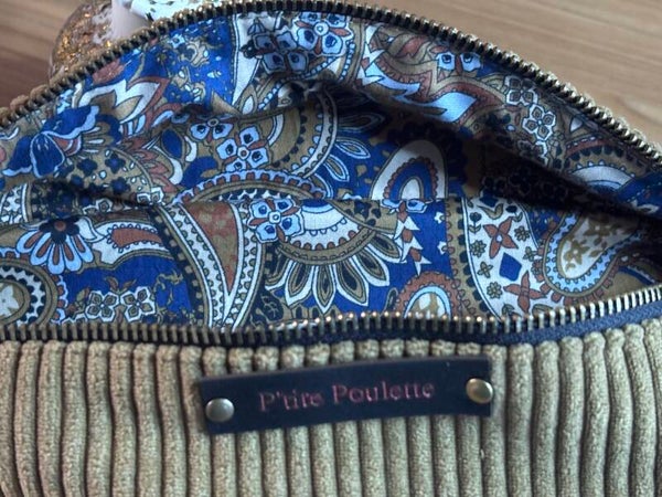 La banane P’tite Poulette séduit par son style à la fois chic et naturel. Réalisée en velours côtelé tabac pailleté, elle allie douceur, éclat et caractère. Sa teinte chaude et sa texture veloutée en font un accessoire idéal pour accompagner toutes les tenues, en toute saison.