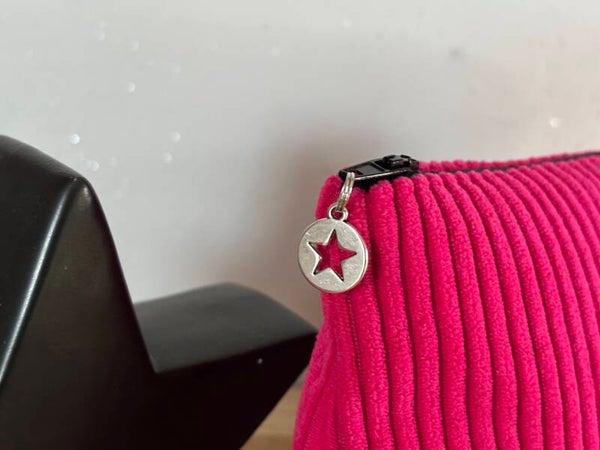 Entièrement doublée de coton assorti, elle se ferme par un zip orné d’une médaille étoile en acier inoxydable, symbole emblématique des créations P’tite Poulette.