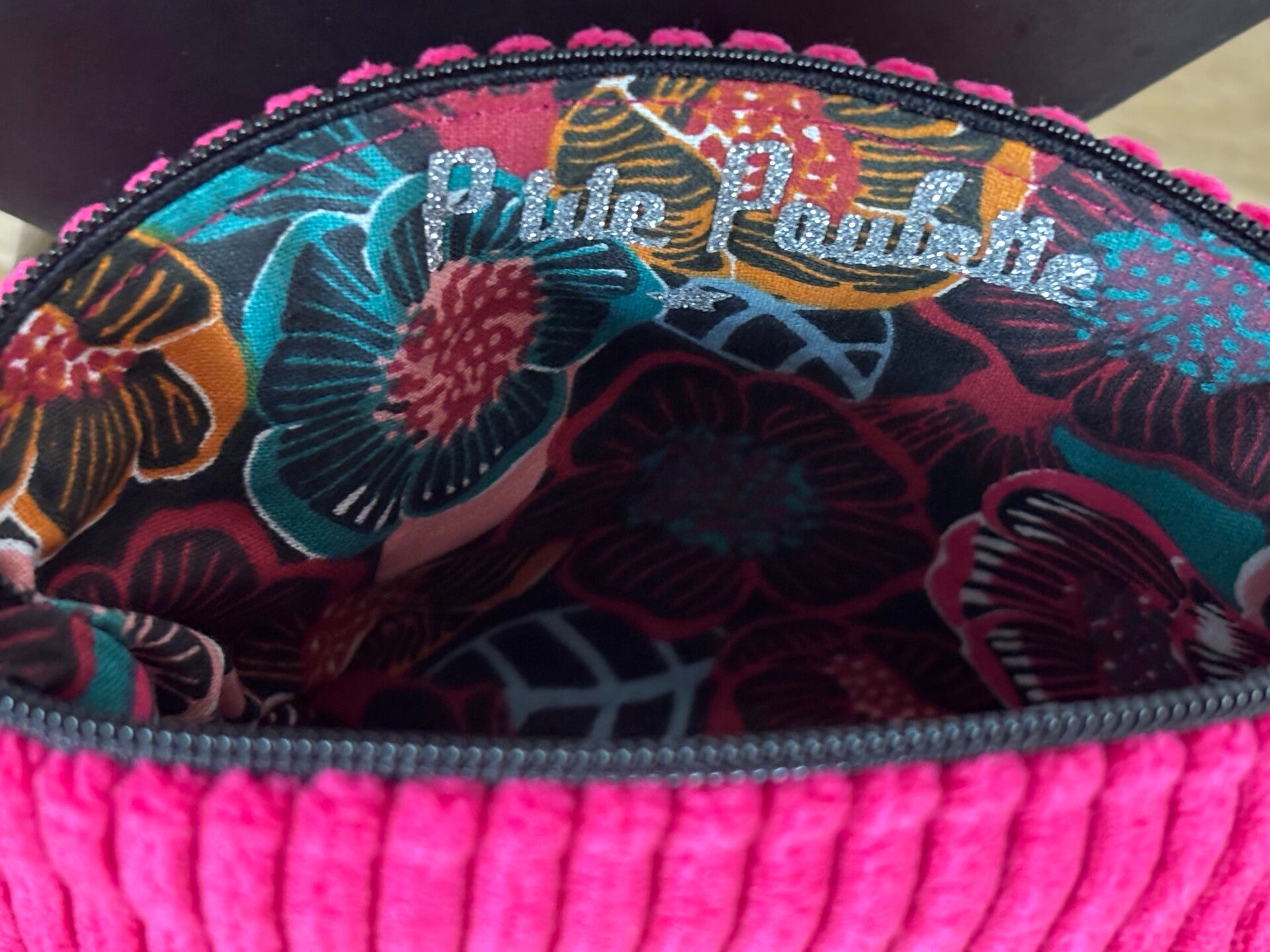 Cette trousse en velours côtelé bleu roi signée P’tite Poulette mêle élégance et originalité. Son tissu tissé aux motifs floraux colorés lui donne une allure à la fois joyeuse et raffinée, parfaite pour accueillir maquillage, bijoux ou accessoires du quotidien.