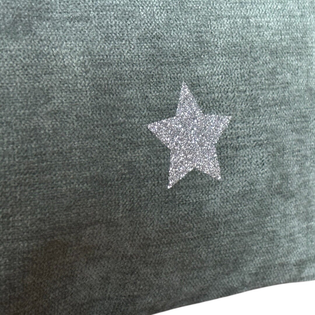 Trousse en velours vert d'eau  23 x 14 x 4 cm, chic et colorée. Fait main en France, finitions soignées et zip orné d’une étoile inoxydable.
