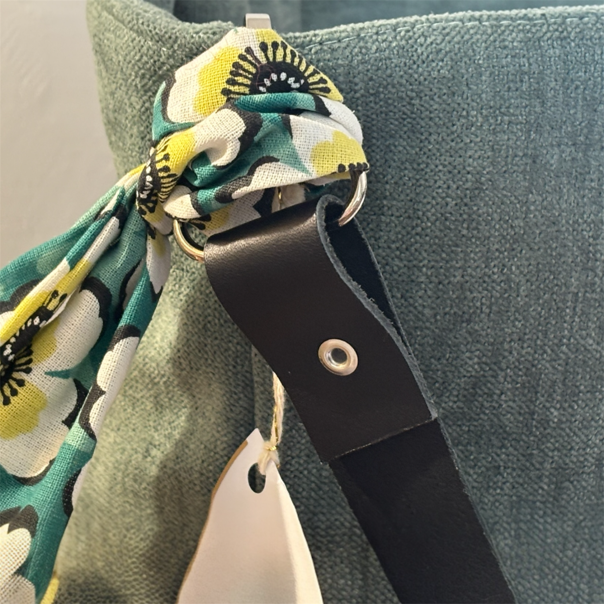 Sac Cabas “P'tite Poulette Collection” – Velours Vert d'eau et Anse en Cuir Véritable – Création Artisanale Française